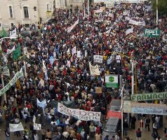 Los manifestantes estuvieron reunidos allí por espacio de una hora cincuenta aproximadamente y finalmente la multitud caminó desde allí hasta la carpa de la dignidad donde terminó el acto impulsado por la ADOSAC con acompañamiento de todos los demás gremios.