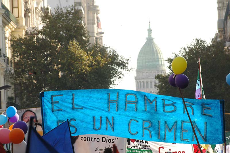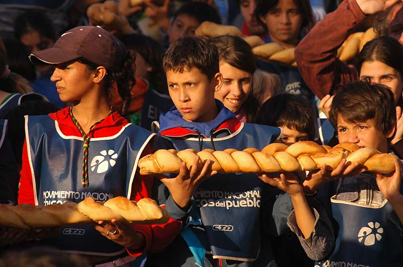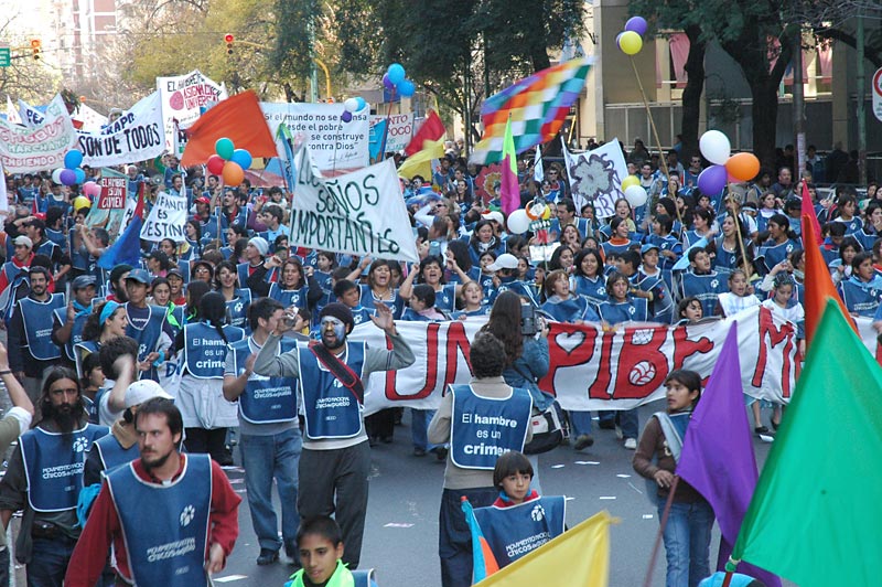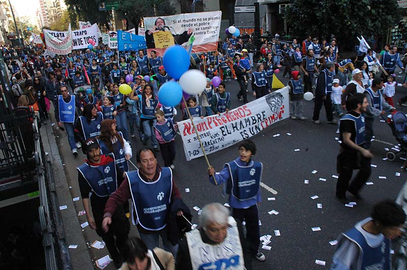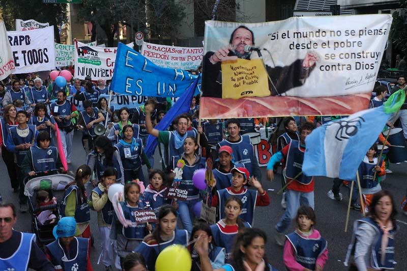 “Dos tercios de la población son pobres. En Argentina hay 9 millones de niños bajo la línea de la pobreza, y de ellos, casi la mitad son indigentes. ¿No son números del horror?”, se preguntó el dirigente y sentenció: “Este Gobierno, y todos los que pasamos en nuestro camino de 15 días, son productores de soledades y de hambre. Por eso rechazamos y luchamos contra este capitalismo serio, contra esta política económica que favorece a los grandes grupos económicos, nos quita la riqueza y los bienes naturales y saca a los pibes de los potreros”.