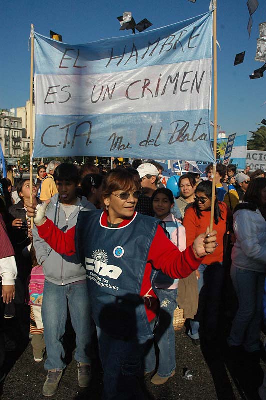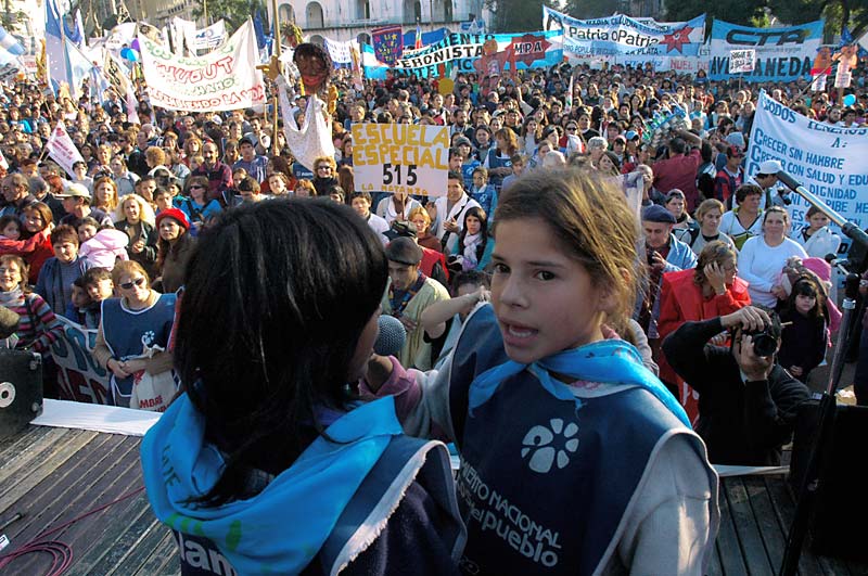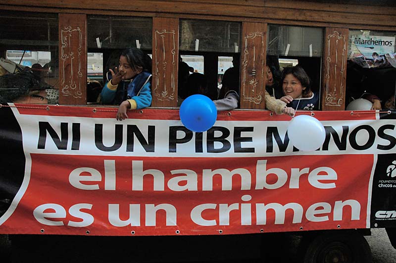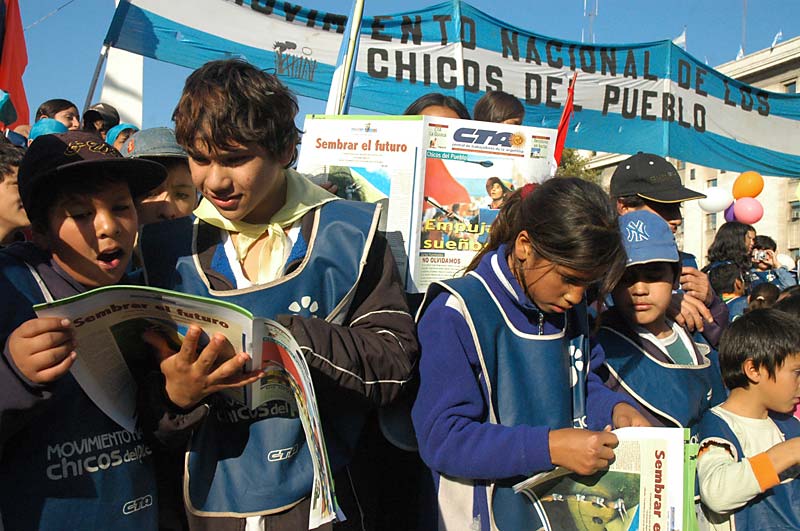 Como a lo largo de los miles de kilómetros que unen la provincia de Misiones con la ciudad de Buenos Aires, las niñas y niños del Movimiento Nacional de los Chicos del Pueblo, integrantes de la CTA, marcharon bajo un solo grito: Ni un pibe menos; basta de hambre, queremos vivir. Y acá los acompañaron cientos de organizaciones sociales, territoriales, barriales y sindicales de la Central, junto a otros chicos de escuelas del conurbano, comedores y hogares.