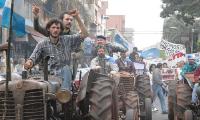 Los tractores y dos camionesse pusieron en marcha cerca de las 8.30, y tras sobrellevar algunos inconvenientes técnicos, partieron flanqueados por la patrulla municipal rumbo al mástil de Uruguay y Mitre, punto de encuentro con el resto de los manifestantes.