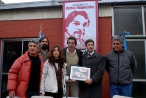 A su turno Sandra Rodríguez, esposa de Carlos Fuentealba, saludó la iniciativa y expresó su agradecimiento “por este homenaje a mi compañero de vida y padre de mis hijas, y a mi familia que me sostiene; este reconocimiento es a un militante de la vida, un defensor valiente que en cada paso dejó una huella que debe ser reproducida”.