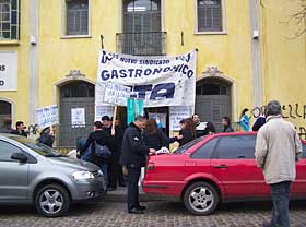 Ante esta decisión, los trabajadores gastronómicos agrupados en la Nueva Organización Sindical (NOS-CTA) se reunieron en la puerta del Club del Vino para realizar un escrache con pintadas y una conferencia de prensa para informar sobre el conflicto suscitado por la patronal.