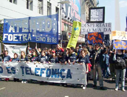 Continúa el paro de 72 horas de los trabajadores afiliados a la seccional Buenos Aires de FOETRA. Reclaman un aumento en los haberes. Ayer se movilizaron hacia la sede de Telefónica de Argentina, ubicada en avenida Corrientes y Maipú, en la ciudad de Buenos Aires; en tanto, en Telecom, se normalizaron las tareas. Además, el Centro de Profesionales de Empresas de Telecomunicaciones (CePETel-CTA) realizará hoy la segunda jornada de paros de horas, entre las 16 y las 18.