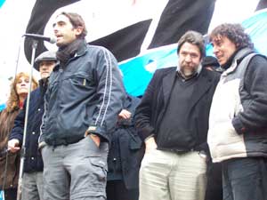 Frente a las puertas del edificio municipal, el secretario adjunto de la CTA Capital Federal, Manuel Alzina acusó: “Mauricio Macri dice que quiere limitar la protesta social, ¿para eso quiere la Policía? Que sepa Telerman que la CTA no va a acompañar esta transición entre dos personas que hacen negocios con la Ciudad de Buenos Aires. Va a discutir la transición en la calle, como lo hace hoy con todas las organizaciones”.