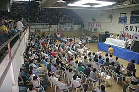 A media tarde de ayer no todos pensaban en el fin de semana largo. En el barrio porteño de Almagro, más exactamente en la Federación Argentina de Box, se acercaban los micros provenientes de Merlo, San Fernando y Llavallol. Llegaban los trabajadores del neumático con todas las energías puestas en la participación de una asamblea trascendental, no sólo porque después de 31 años se discute un Convenio Colectivo de Trabajo para ese sector de la industria, sino porque se estaba por resolver un plan de lucha en rechazo a las propuestas empresariales.
