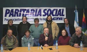 En la conferencia de prensa estuvieron, además de Yasky y Micheli, otros integrantes de la conducción nacional como Ricardo Peidro; Stella Maldonado; Francisco Nenna; Gustavo Rollandi; José María Urelli; Roberto Baradel, de la CTA bonaerense; Fabio Basteiro, de la Central porteña; Cecilia Martínez y Alejo Demicheli.