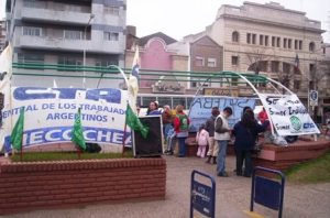En la provincia de Santa Fe, además de las acciones de prensa, la Central montó una radio abierta con volanteadas en cada cabecera departamental.
