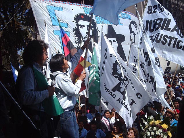 En tanto, la representante de la Tupac Amaru, Milagro Sala, remarcó: “Estamos peleando por la dignidad de nuestros jubilados, para que no hayan más planes sociales ni bolsones de mercadería, queremos trabajo digno, vivienda para todos y que nuestros niños no se mueran de hambre”.
