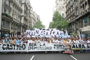 La marcha partió a las 11.30 de Avenida de Mayo y 9 de Julio y cuando llegó al anexo del Congreso frente al cual se encontraba montado un escenario, donde la esposa de Fuentealba, Sandra Rodríguez, se abrazó con integrantes de Madres de Plaza de Mayo-línea Fundadora, Nora Cortiñas y "Tati" Almeyda. La medida de fuerza contó con la adhesión de los gremios docentes de la CGT: UDA, SADOP y AMET. Esta huelga se da en el marco de la Campaña Nacional contra la Impunidad y por el Juicio y Castigo a los responsables materiales e intelectuales del asesinato del docente neuquino Carlos Fuentealba, la Junta Ejecutiva de CTERA, junto al Plenario de Secretarios Generales de todas las provincias, decidió por unanimidad convocar a un Paro Nacional para hoy.