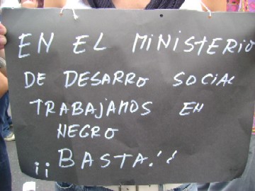 Contrariamente a las declaraciones que el Ministro de Trabajo, Carlos Tomada, esgrime destacando " la caída del empleo no registrado" bajo las cifras increíbles que surgen del cuestionado e intervenido Instituto Nacional de Estadísticas y Censos (INDEC), los trabajadores nucleados en ATE exigen al Gobierno Nacional desde hace "varios años terminar con el trabajo en negro" en el Ministerio de Desarrollo Social donde aproximadamente 1.000 trabajadores se desempeñan con los denominados contratos basura. Hoy los trabajadores concentraron en las puertas del organismo para decir nuevamente basta.