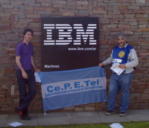 El viernes pasado en horas de mediodía estuvieron presentes los compañeros de CePETel-CTA frente a las puertas del edificio de IBM Martínez para volantear la entrada y salida de los trabajadores sobre las actividades que está desarrollando ese gremio en la Rama Informática para promover la organización de los trabajadores que trabajan alli.