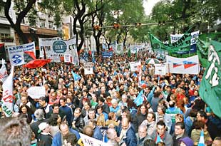 La columna, que encabezaban los trabajadores del Teatro Colón, marchó por la Avenida de Mayo hasta la sede del Gobierno de la Ciudad, donde se realizó el primer acto del día. “Estamos reclamando que el gobierno del señor Ibarra cumpla lo que ha prometido, estamos reclamando el aumento salarial y mejores condiciones de trabajo”, enfatizó Rodolfo Arrechea, secretario general adjunto de la ATE porteña.