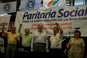 El máximo dirigente de la CTA también explicó que es la Paritaria Social. “Tiene que ser el punto de partida de un combate que nos una a todos discutiendo como pueblo, para que la unidad de los trabajadores del campo popular sea un proyecto estratégico por el cual volvamos a darle fuerza al Movimiento Político, Social y Cultural, que nos permita plantear un nuevo contrato social donde la base sea la justicia y podamos reunirnos en una Asamblea Constituyente para avanzar en este proceso de lucha”.