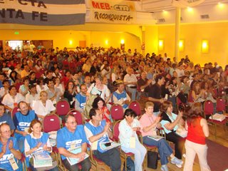 Posteriormente hizo uso de la palabra Hugo Yasky quien se dirigió a los presentes expresando: “Santa Fe es una de las vigas fundamentales de esta construcción; nosotros aquí tenemos que depositar el grueso de la construcción, junto a Buenos Aires y otras provincias más fuertes, pero acá hay una gran oportunidad: tenemos obreros industriales, movimientos sociales con fuerte presencia en los territorios, tenemos una importante inserción en el sector público, un desarrollo en el campo de la juventud, movimientos de jubilados y tenemos una experiencia nueva que surge como producto de la crisis, la de los trabajadores autogestionados. Tenemos el ingrediente que describe la nueva fisonomía de la clase trabajadora y del campo popular”.