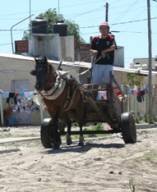 Trasponer el Riachuelo es comenzar a adentrarse en el sur del Conurbano. Los espacios se hacen más amplios. En las calles tienen cabida autos de unos cuantos modelos atrás que conviven democráticamente con el carrito con neumáticos pero tracción a sangre. Abundan los pasacalles de agradecimiento a San Expedito: el territorio impone una cierta celeridad a los tiempos celestiales.