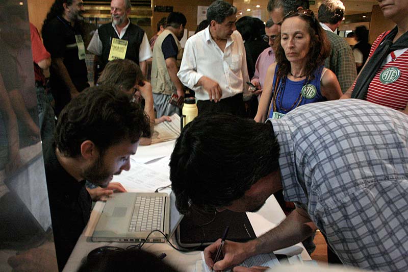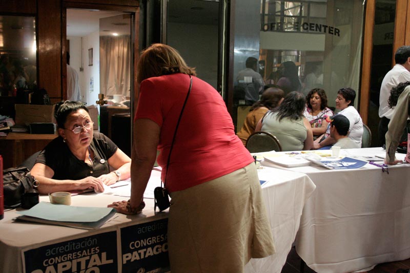 Desde primera hora se montaron las mesas, primero para acreditar a los congresales, después para dar información y exponer producciones editoriales y de video de organizaciones y CTA provinciales, las resoluciones de las comisiones o cómo funcionan los correos electrónicos de nuestra RedCTA.