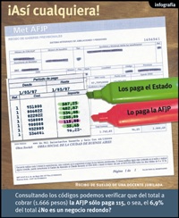 Por último un dato. Con los fondos que manejan y manejaron estos años las AFJP se podrían haber aumentado todas las jubilaciones en 27% cada uno de estos últimos doce años. Esto quiere decir que una jubilación mínima que empezó con 200 pesos ahora podría ser de 860. Con un sistema público fuerte y en crecimiento, los aportes de cada trabajador en actividad se convierten en un fondo común para pagar los haberes a los actuales jubilados. Y mañana, otros se jubilarán con los aportes de nuevos trabajadores. Por eso es un sistema solidario.