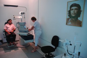 Dorian Fernández aprieta manos de bienvenida. En el centro Oftalmológico. Los enfermos pueblan pasillos, se acomodan en consultorios, escuchan. En el ambiente prende olor a quirófano. Olor sano a comida de hospital. Tonada caribeña. Médicas explican acciones. Van y vienen. Guardapolvos verdes. Dorian invita a los cronistas, propone tomar café en la sala de estudio. “Desde ahí se pueden ver las operaciones por circuito cerrado de video”, informa, cubano. Y remeda acento rioplatense. Tiene 43 años. Ríe y abraza.