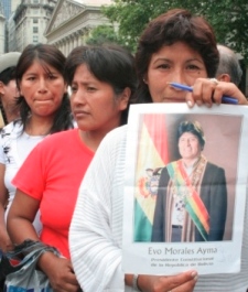 En la plaza histórica, entre banderas de Bolivia, de la wipala (símbolo de los pueblos originarios) y de organizaciones sociales y políticas (entre ellas de la CTA, como el Frente Transversal y el MUC) el Comité de Defensa del Proceso de Cambio y la Soberanía Popular Originaria en Bolivia saludó el proyecto liberador que se vive en Bolivia, el primer gobierno indígena y campesino en más de 180 años de vida republicana, que ha avanzando en una política de cambios estructurales en ese país.