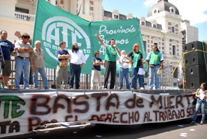 Hugo Godoy, Secretario General de ATE provincia de Buenos Aires, al inicio del acto frente a la Casa de Gobierno señaló:” las autoridades han tomado nuestros reclamo y el gobernador instruyó a sus ministros para en un breve plazo se de cause a nuestra propuesta. Para nosotros esto es muy positivo hoy estamos atravesando un momento difícil, a raíz del fallecimiento de nuestro compañero Juan Manuel Rollieri, cada trabajador muerto en un accidente de trabajo es un mártir de nuestras luchas. No se puede cambiar la vida de un trabajador por nada, no hay nada más importante que su vida, y hoy le rendimos homenaje a todos ellos en esta marcha y con nuestra pelea diariamente.”