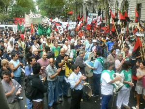 Convocados por la CTA porteña, aportaron lo suyo las columnas de ATE, UTE, ADEMYS, bancarios y telefónicos en CTA, la Mesa Coordinadora de Jubilados y Pensionados, visitadores médicos, el Movimiento Territorial de Liberación, el Movimiento de Ocupantes e Inquilinos, AMMAR, villa 31 y los trabajadores precarizados de la ciudad.