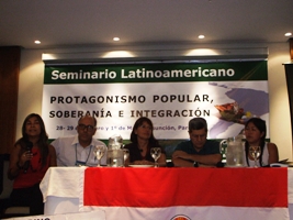 También lo hicieron Margarita Mbywangi, dirigente del Movimiento Indígena de Paraguay; Santos Ramirez Valverde, senador del MAS de Bolivia; Julio Jose Chiavenatto, historiador de Brasil; Ricardo Canese, Secretario de Relaciones Internacionales de Tekojoja; Francisco Torrealba, diputado Venezolano; Anibal Carrillo, Presidente de Tekojoja y Eleonor Bianchi, diputada de Uruguay.