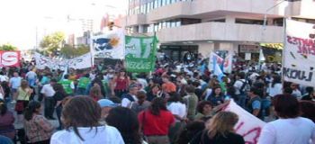 La columna de manifestantes comenzó a recorrer pasadas las 11 el centro de esta ciudad, al cumplirse un año del crimen del docente neuquino Carlos Fuentealba. La CTA de Neuquén está llevando adelante un paro de actividades y participando activamente de la movilización.