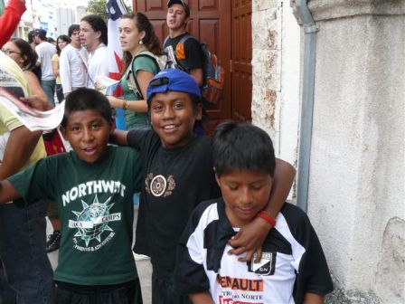 Pasado el mediodía del jueves, nos fuimos al barrio Tupaquero, conmovedora la panorámica que se tiene cuando se va llegando…todas las casitas similares, los murales, las cooperativas, la gente; de no creer. En el corazón del barrio funciona un quincho con pileta “el country de los pobres” le llaman, se encuentra rodeado de dos cooperativas: la textil y la de adoquines y ladrillos. Además del Primer CIC construido en Argentina (Centro Integral Comunitario), recorrimos la fábrica textil, lugar claro, iluminado, poblado de consignas y miradas combativas.