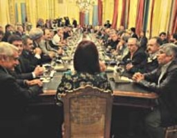 La entrevista colectiva, de la que también participó una delegación de la CGT encabezada por Hugo Moyano, tuvo lugar a partir de las 18.30 en el Salón Norte de la Casa de Gobierno.