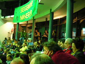El miércoles 7 de mayo fue el Día Nacional de la Minería. En el Consejo Nacional de ATE, en el Anfiteatro Eva Perón y a sala llena, se realizó una charla con la presencia de Víctor De Gennaro, Claudio Lozano, José Rigane, Pino Solanas y Pablo Juárez de la Junta Interna de Minería, organizadora de la charla, para denunciar el saqueo de los recursos naturales.
