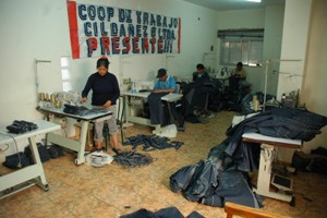 Domingo Quentasi preside la cooperativa de trabajo Cildañez. Taller textil envuelto en cortes de jean. Pantalones. Camperas. Minifaldas. Desde las 6 de la mañana hasta las 10 de la noche. Todos los días. Trabajo para los compañeros. “Acá somos libres”, dice Domingo, “esta cooperativa es nuestra, no somos esclavos de nadie”. 11 máquinas. 4 mil prendas. “Queremos organizarnos mejor todavía”, dice Domingo, “crecer, hacer las cosas bien, formalizar el funcionamiento de la cooperativa”.