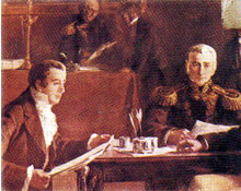 Pero Saavedra sólo dura cuatro meses al frente del gobierno. Ha acercado a Rivadavia al poder, pero el brillante abogado y los porteños se ensañan con éI y lo persiguen durante cuatro años por campos y aldeas; se ensañan también con Castelli, que muere deslenguado durante el juicio; con el propio San Martín que combate en Chile; con Belgrano que muere en la pobreza y el olvido gritando el plausible "¡ Ay patria mía! " Pese a todo, la idea de independencia queda en pie levantada por San Martín, que se ha llevado como asistente a Monteagudo, "el del alma más negra que la madre que lo parió". Los ramalazos de la discordia duran intactos medio siglo y se prolongan hasta hoy en los entresijos de una historia no resuelta.