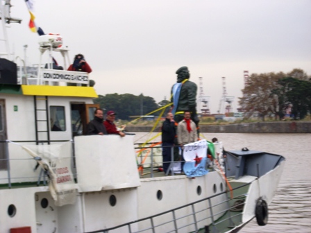 Luego del recorrido por las avenidas porteñas, el monumento ingresó en el puerto de Buenos Aires, donde fue recibido por trabajadores de Vías Navegables, nucleados en ATE-CTA.