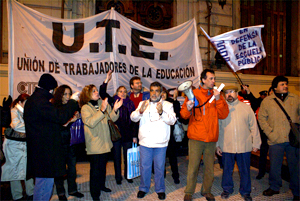 La Unión de trabajadores de la Educación (UTE-CTERA), se concentró una vez más, en reclamo de Libre Opción de Obra Social frente a la Jefatura de Gobierno de la Ciudad de Buenos Aires a 6 meses de la promesa de Mauricio Macri.