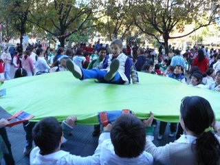 Para delicia de chicos y grandes, después llegó el turno del Circo Callejero y el grupo de percusión Maroma y, luego, vino la singular actuación del conjunto de sikuris “Kankaña”, en tanto los chicos seguían con sus "manteadas".