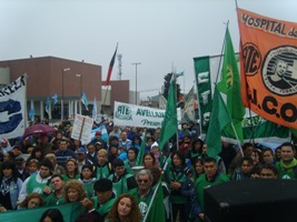 El Frente Gremial de Trabajadores de la Salud realizó hoy un paro de actividades en los 77 hospitales bonaerenses y una movilización al Hospital El Cruce de Varela.