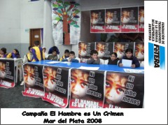 A las 10.30 se dio inicio a la conferencia de prensa, a la que acudieron todos los medios televisivos e importantes radios de la ciudad, paralelamente se inauguró la muestra pictórica de las pequeñas y hermosas obras de los niños de los distintas escuelas, barrios y organizaciones barriales y sociales. Con este acto se dio inicio a la Campaña El Hambre es un Crimen 2008 en Mar del Plata.