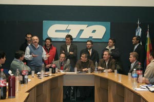 En el salón azul de la sede nacional de la Central se realizó este mediodía un acto que formalizó estas dos nuevas incorporaciones gremiales. El secretario general de la CTA, Hugo Yasky, acompañado por los integrantes de la Mesa Ejecutiva nacional, fue el encargado de recibir a los dirigentes de estos gremios, que según explicaron luego, trabajan conjuntamente con la Asociación de Personal Aeronáutico (APA-CTA) en la organización de todos los trabajadores del sector.