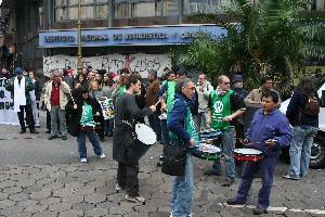 La protesta incluyó un abrazo simbólico al organismo y contó con la presencia de dirigentes de la ATE porteña y de la CTA, como Víctor De Gennaro, otras organizaciones sociales y partidarias y diputados nacionales, entre ellos, Claudio Lozano.