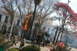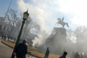 Al menos diez trabajadores detenidos y un número no precisado hasta ahora de heridos es el saldo provisorio de los violentos enfrentamientos que se registran desde las 11 entre los manifestantes y la Guardia de Infantería en las inmediaciones de la Legislatura.