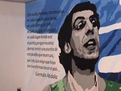 La primera emoción la produjo el descubrimiento del mural–homenaje a Germán Abdala, realizado por militantes de la CTA Capital, que impresionó por la fuerza que transmite y por la convocatoria a “…encontrarnos…en cada lugar donde esté el pueblo…que late, que exige que haya una transformación en el país…”.
