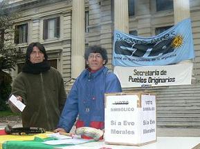 Durante la mañana y la tarde de ayer, a pesar de la lluvia, miles de firmas y votos simbólicos de apoyo a Evo fueron aportados por los transeúntes que se expresaron por el “Sí a Evo Morales / Sí al proceso de cambio en Bolivia y en América / No a los planes separatistas de la oligarquía racista del imperialismo”, según rezaban los volantes que se repartieron durante la jornada.