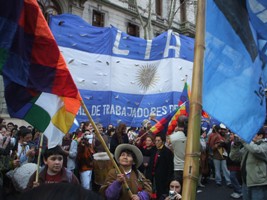 Las banderas de la CTA de la Capital Federal y de la provincia de Buenos Aires, junto a las de otras organizaciones territoriales como la Organización Tupac Amaru, el Movimiento Territorial Liberación (MTL-CTA), y Barrios de Pie, acompañaban a las organizaciones de los bolivianos, quienes hicieron flamear la bandera nacional tricolor y la multicolor wiphala cuadrangular, el símbolo andino de los pueblos originarios.