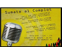 En la opoortunidad, y bajo el lema ’Sumate al Complot’, hacia una radio comunitaria, por una comunicación democrática, participativa y plurimedial se proyectará el informe: ’Hacia una Radio Comunitaria’ de producción propia.