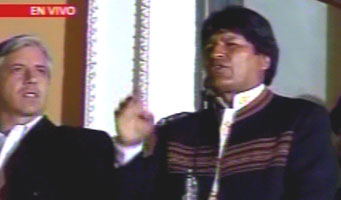 Por Mariano Vázquez, enviado especial. Bolivia se vistió de fiesta y algarabía para celebrar el apoyo popular al proceso de cambio iniciado hace dos años y medio. Según los resultados extraoficiales de conteo rápido el Presidente y Vice de la República obtuvieron 10 puntos más que en las elecciones de 2005.
