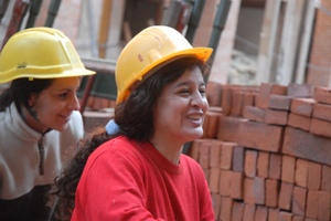 “Si tenés problemas de vivienda, vení a construirla junto a nosotros”. Así convoca un afiche del Movimiento que reluce en el pañol de obra. Y los compañeros van y vienen, con sus herramientas, con sus cascos amarillos, sube y baja el montacarga, las compañeras humedecen ladrillos, enguantadas y urgentes, los apilan, en los andamios se gastan bromas, el ruido a albañilería apenas deja oir una tonada chamamecera sudando en la radio, irrumpe el zapucay, las carretillas aparecen por todos lados, en las alturas de los departamentos truenan las carcajadas, la mezcladora devora arena y cemento, en el fondo cortan las varillas, alguien pregunta por la soldadora, los fratachos fratachan…