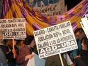 El sector reclama una recomposición salarial para que los sueldos de cargos testigos sean de 1.500 pesos, además del pago del 85 por ciento móvil para los jubilados universitarios, el aumento del presupuesto universitario y la derogación de la Ley de Educación Superior, entre otros puntos.