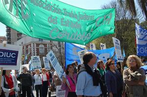 La jornada de protesta serealizó también en rechazo de cualquier medida que implique recortar los haberes de los trabajadores en actividad, ante la ola de rumores que invadieron la provincia, dada la escasa capacidad financiera que muestra el gobierno de Schiaretti.