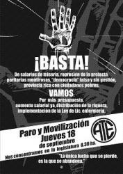 "Los trabajadores decimos ¡Basta!, y en conjunto con otros gremios estatales como Judiciales, Fadiunc, y muchas compañeros de distintas organizaciones del campo popular llamamos a la jornada de lucha para el jueves 18 de septiembre", expresaron desde ATE.