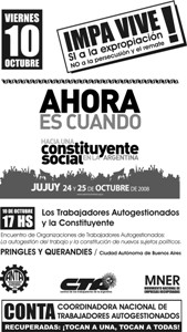 Previamente, a las 17, habrá un debate para definir en común el rol de la autogestión en la convocatoria a una Constituyente Social en la Argentina.